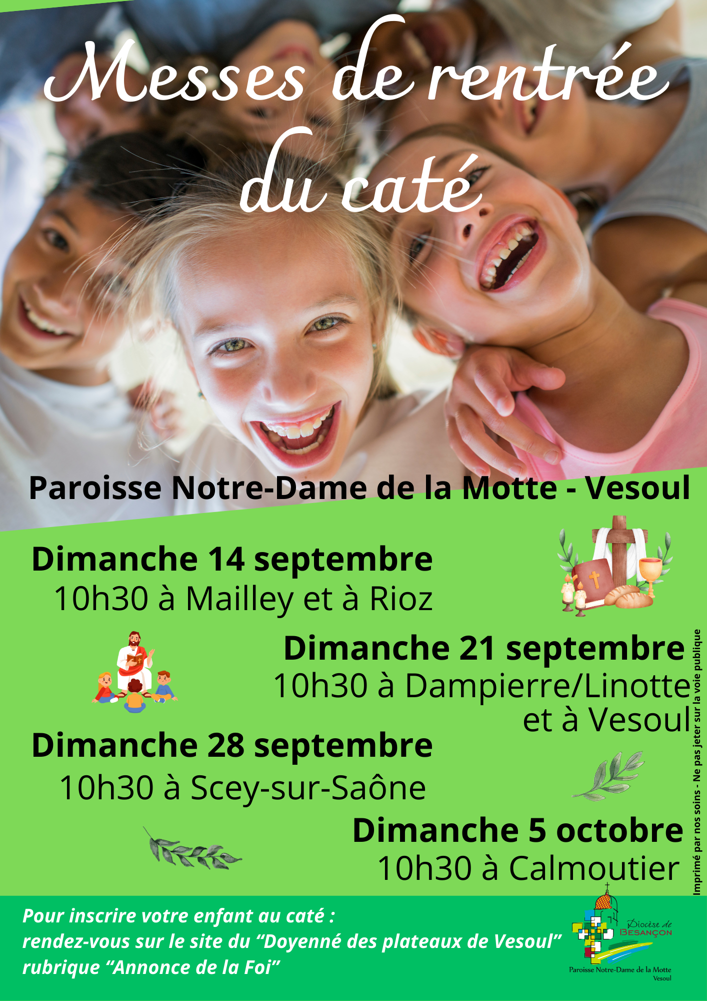La Frat de l’église domestique invite tous les enfants, et leurs parents, pour un moment convivial et festif avant la messe de la Toussaint. Les enfants sont encouragés à se déguiser en saints : leur saint patron ou leur saint préféré. Des activités amusantes et adaptées aux enfants sont prévues, et nous vous invitons à vous inscrire par e-mail ( fed.vesoul@gmail.com) pour y participer.