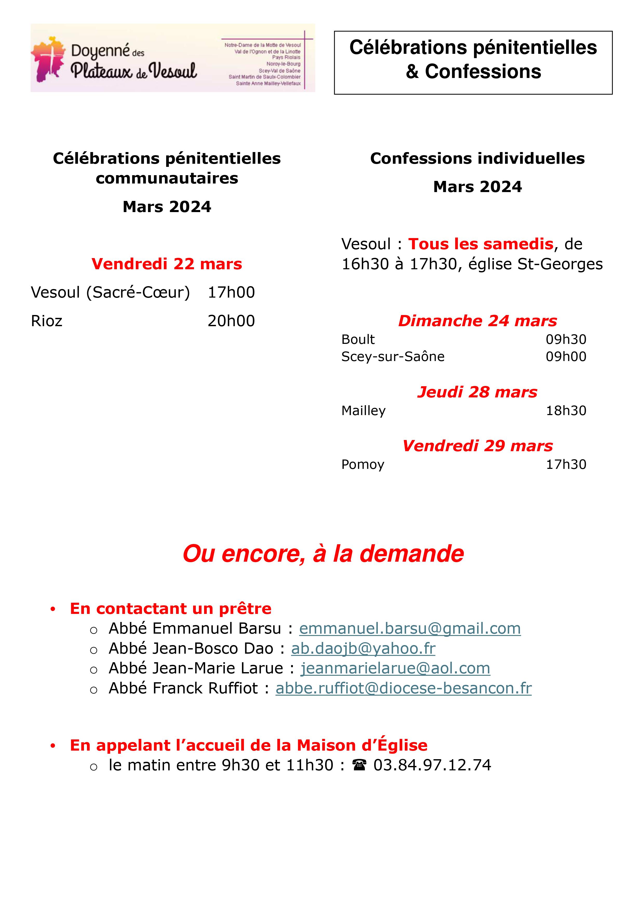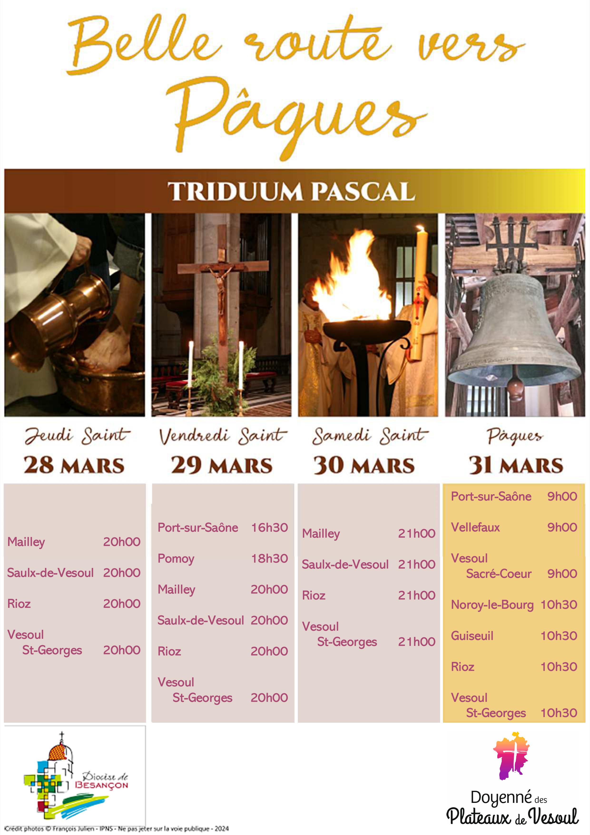 Toutes les informations sur les célébrations, chemins de croix et confessions.